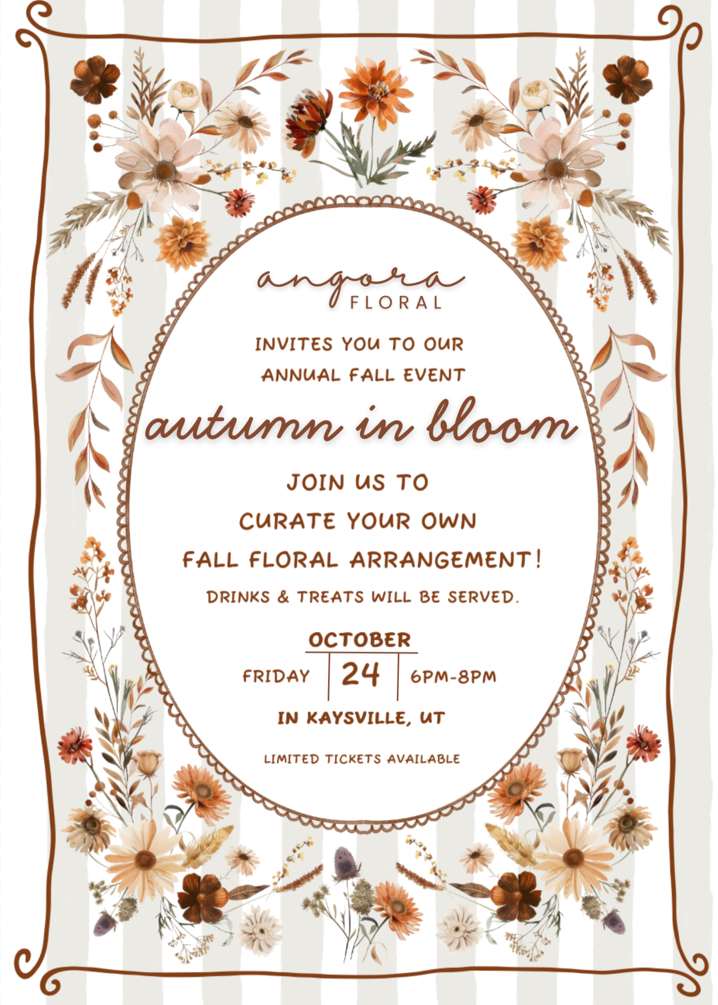 Autumn in Bloom Event $45.00 One Time Delivery - Petal $15.00 One Time Delivery - Posy $25.00 One Time Delivery - Fleur $45.00 Have Questions?hello@angorafloral.com Name * First Name Last Name Email * Question * Thank you!